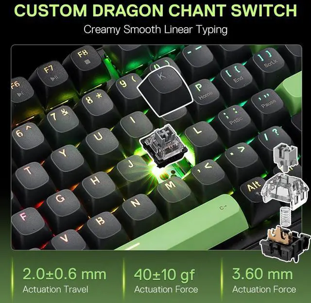 Custom Dragon Chant Switch - With thick-lubed custom linear switches combo with the solid form factor, K740 features cushioned rich linear travel with silky creamy and cozy typing feedback