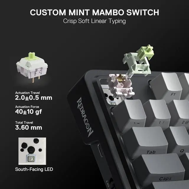 Custom Mint Mambo Switch - With thick-lubed custom linear switches combo with a gasket form factor, which features cushioned rich linear travel with silky creamy and cozy typing feedback. The brand new upgraded socket is nearly all switches(3/5 pins) compatible