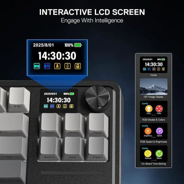 Smart Info-Island Screen - 1.41 in info center TFT screen, gathering keyboard info, connection mode, battery level, typing status, unveiling everything you want to know, enjoy gif meme customized fun for the present mood