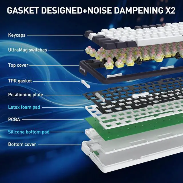8K Hyper-Polling - REDRAGONs most advanced gaming keyboard gears the native 8,000Hz hyper-polling response. Quickly connected with a detachable USB-A to USB-C cable to transmit inputs up to 8x faster (0.125ms lowest latency), always gets pre-acted in the game.