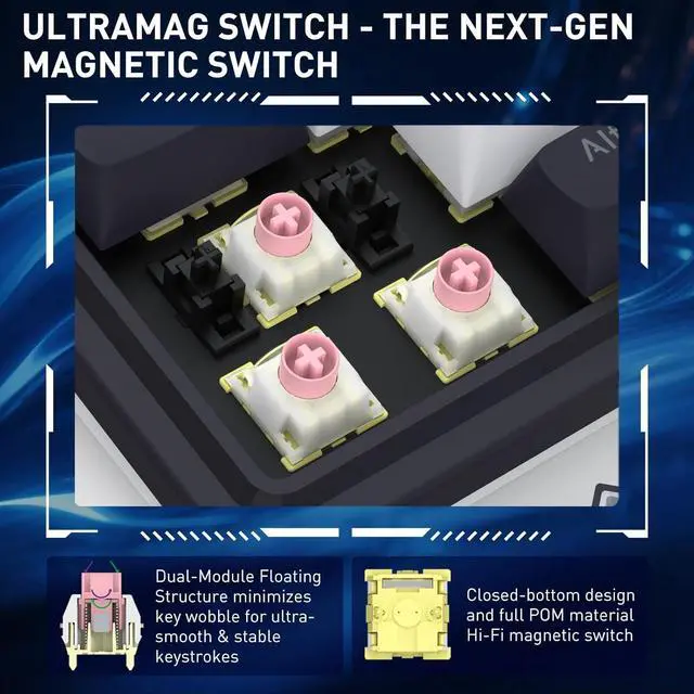 THE BANGER UltraMag - The legendary next-gen UltraMag magnetic switch features an anti-wobble dual-module floating structure for unparalleled reliability & hyper-fast precision. Its full-POM construction with enclosed base delivers buttery-smooth keystrokes with crisp, Hi-Fi sound.
