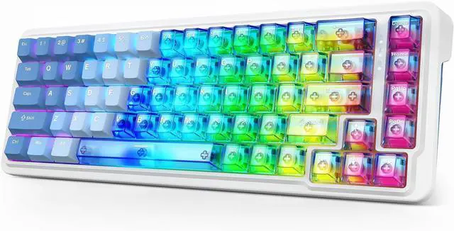 Flawless 68-Key Perfection A groundbreaking fusion of gradient and frosted transparent blue PBT keycaps, delivering an unmatched tactile experience and refreshing visual appeal. Ultra-compact and slim, this 68-key minimalist design liberates desk spaceless clutter, more productivity.