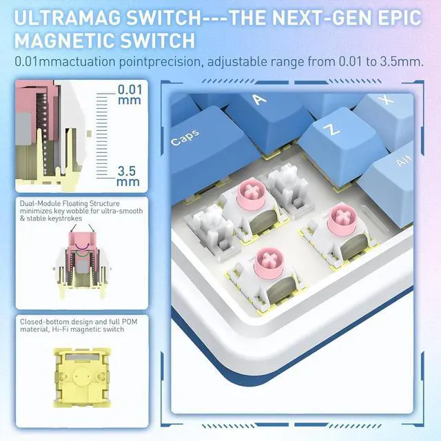 THE BANGER UltraMag - The legendary next-gen UltraMag magnetic switch features an anti-wobble dual-module floating structure for unparalleled reliability & hyper-fast precision. Its full-POM construction with enclosed base delivers buttery-smooth keystrokes with crisp, Hi-Fi sound.
