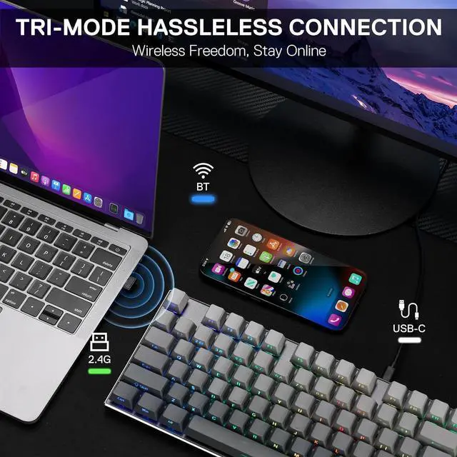 3-Mode Connection - Geared with Redragon innovative tri-mode connection technology, USB-C wired, BT 3.0/5.0 & 2.4Ghz wireless modes which make the user experience upgraded to another level in all fields.