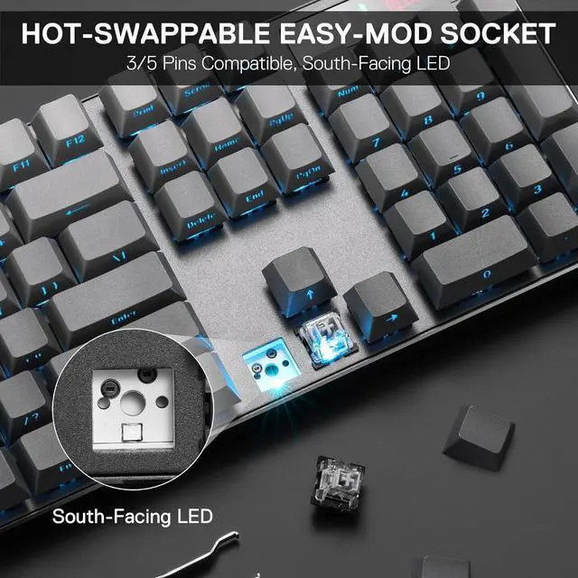 YES! TRUE HOT-SWAP - The transformative innovation with 99.8%+ switches compatible free-mod hot swappable Redragon keyboard is available now. The unique exclusive structure design of the socket makes the switch mounting easier and less wobbling.