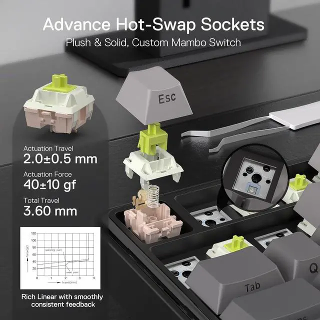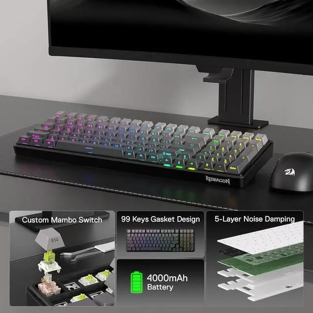 Redragon K744 GB PRO 99 Keys Wireless Gasket RGB Gaming Keyboard, 3-Mode Mechanical Keyboard w/Hot-Swap Socket, Gradient PBT Keycaps & 5-Layer Noise Dampening, Custom Linear Switch