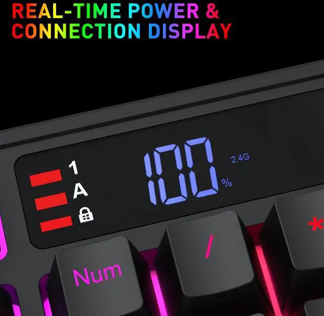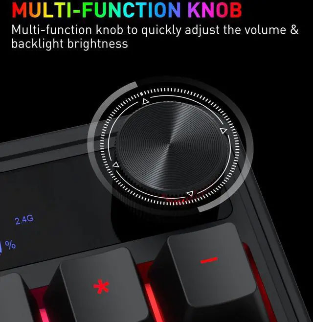 | Keyboard Description | 104 Keys Wireless Membrane Gaming Keyboard w/ Knob & Screen |