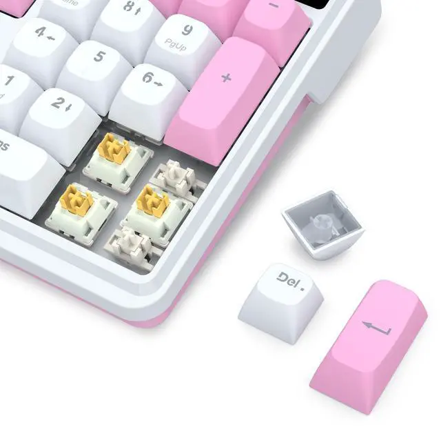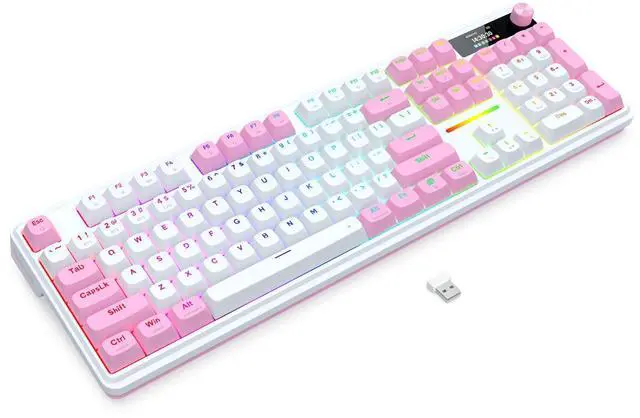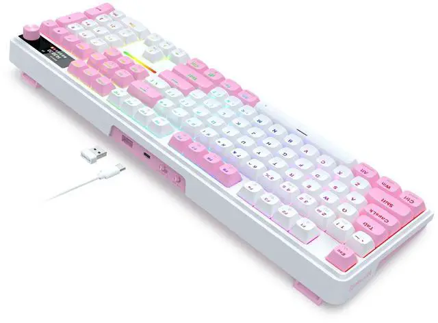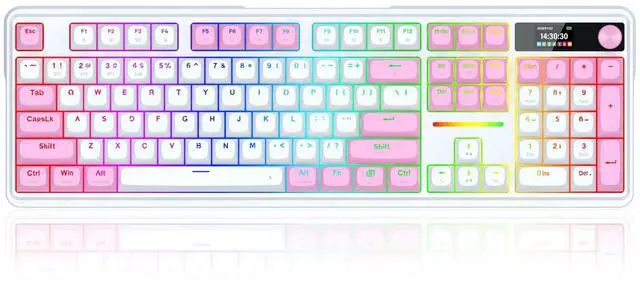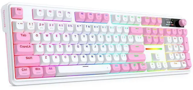 Redragon K762 Wireless Gasket Gaming Keyboard w/Hype Screen & Knob, 104 Keys Mechanical Keyboard, Easy-Control 1.14 TFT Info Display, 5-Layer Noise Dampening, Round PBT Keycaps, Custom Linear Switch