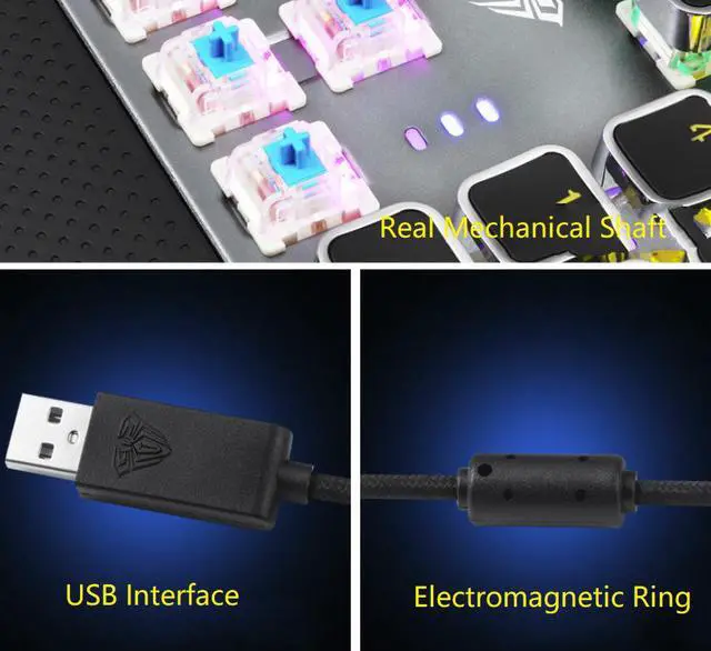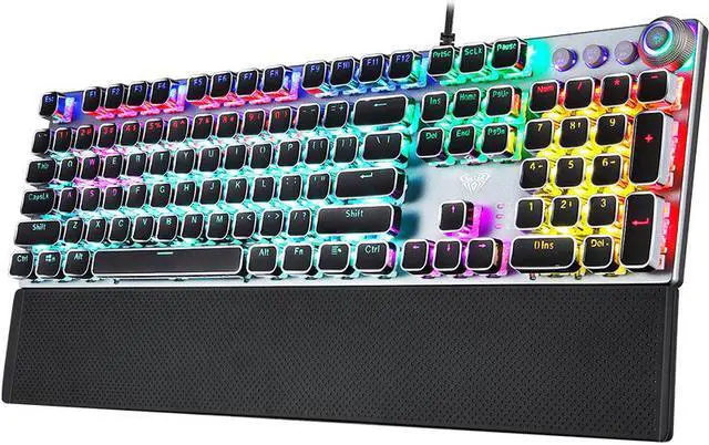 AULA F2088 All Anti-ghosting Keys, Ergonomic Design, Cool Exterior USB Wired Real Blue Mechanical Gaming Keyboard-Punk Style Version and Mixed Color Backlit