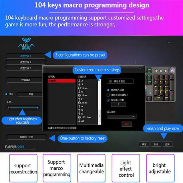 1.Knob dual mode design default lighting mode like "light effect mode "and "multimedia mode"