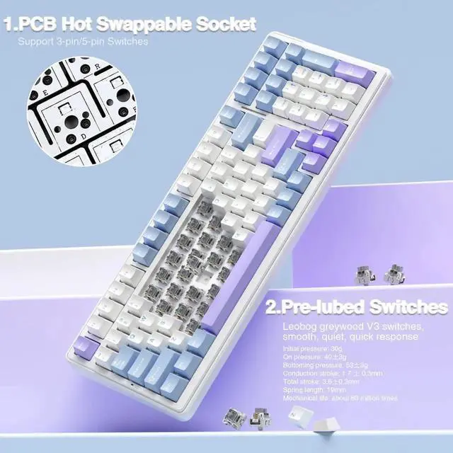 Wireless Keyboard and Mouse Combo, F99 Wireless Mechanical Keyboard Hot Swappable Custom Keyboard+SC580X Wireless Gaming Mouse Light purple