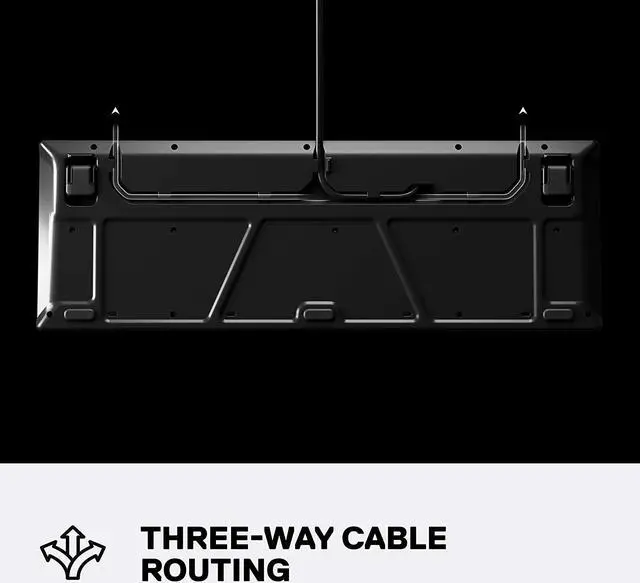 Built-in cable routing channels that allow you to choose from one of three possible places for your cable to exit, keeping your desk tidy.