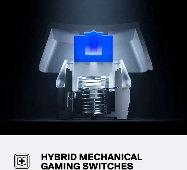 The combined smoothness of a membrane switch and the added durability, performance, and satisfying tactile click of a blue mechanical switch, so you don’t have to choose one over the other.