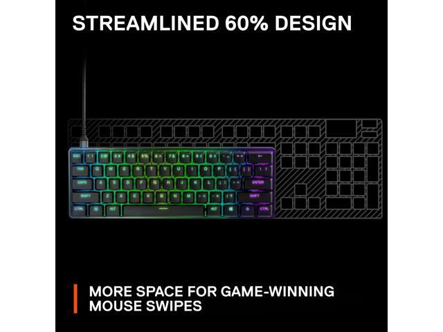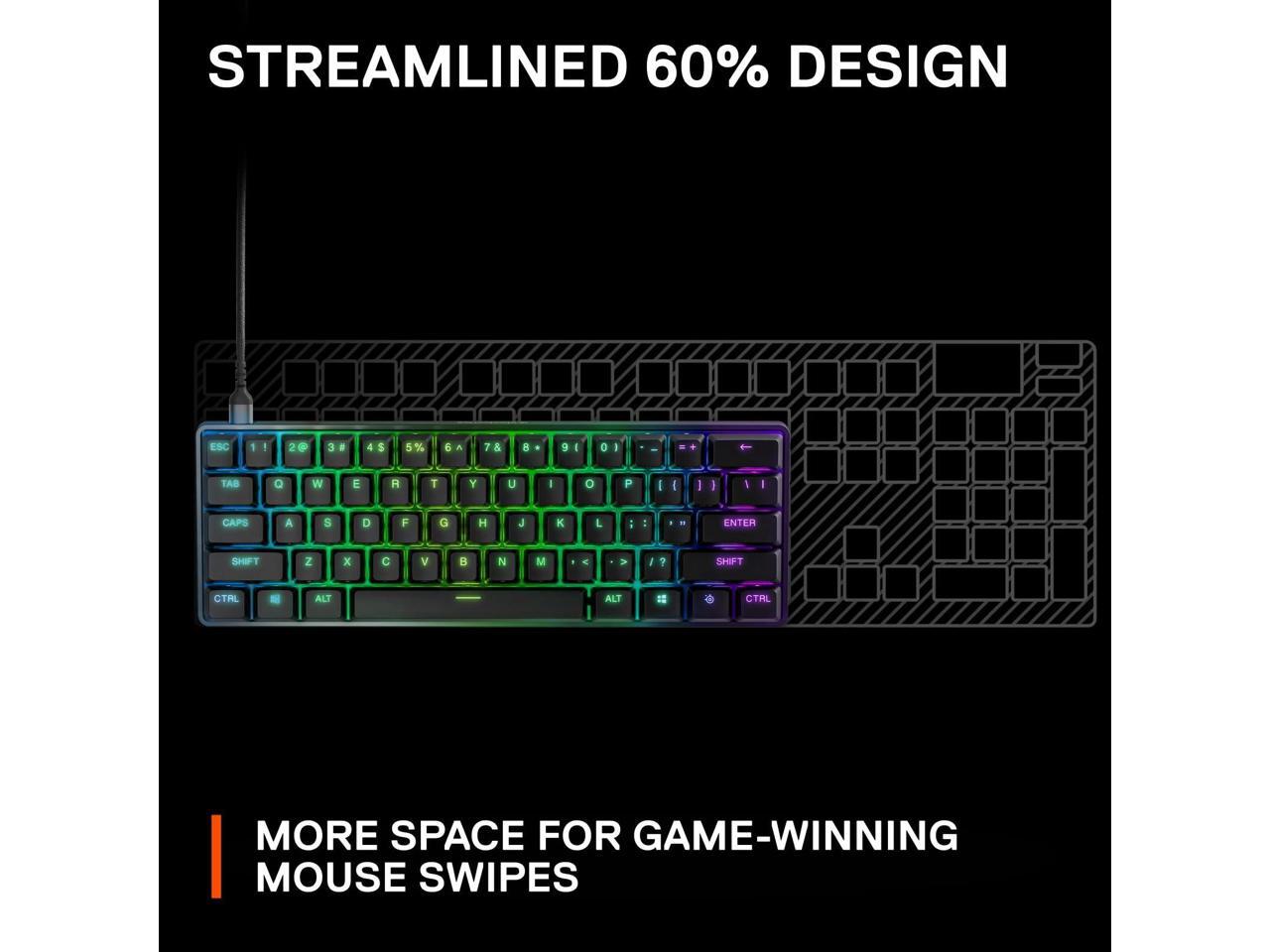 - Compact 60% Form Factor - Streamlined design saves desk space and leaves more room for mouse movement, retaining full-size keyboard capabilities with side-printed functions