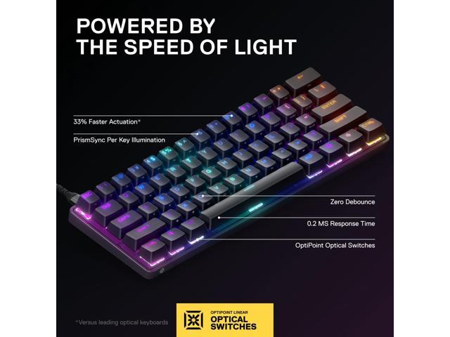 - Play at the Speed of Light - Outpace leading optical keyboards with 33% faster actuation using custom OptiPoint switches with zero debounce and a lightning-fast 0.2ms response time