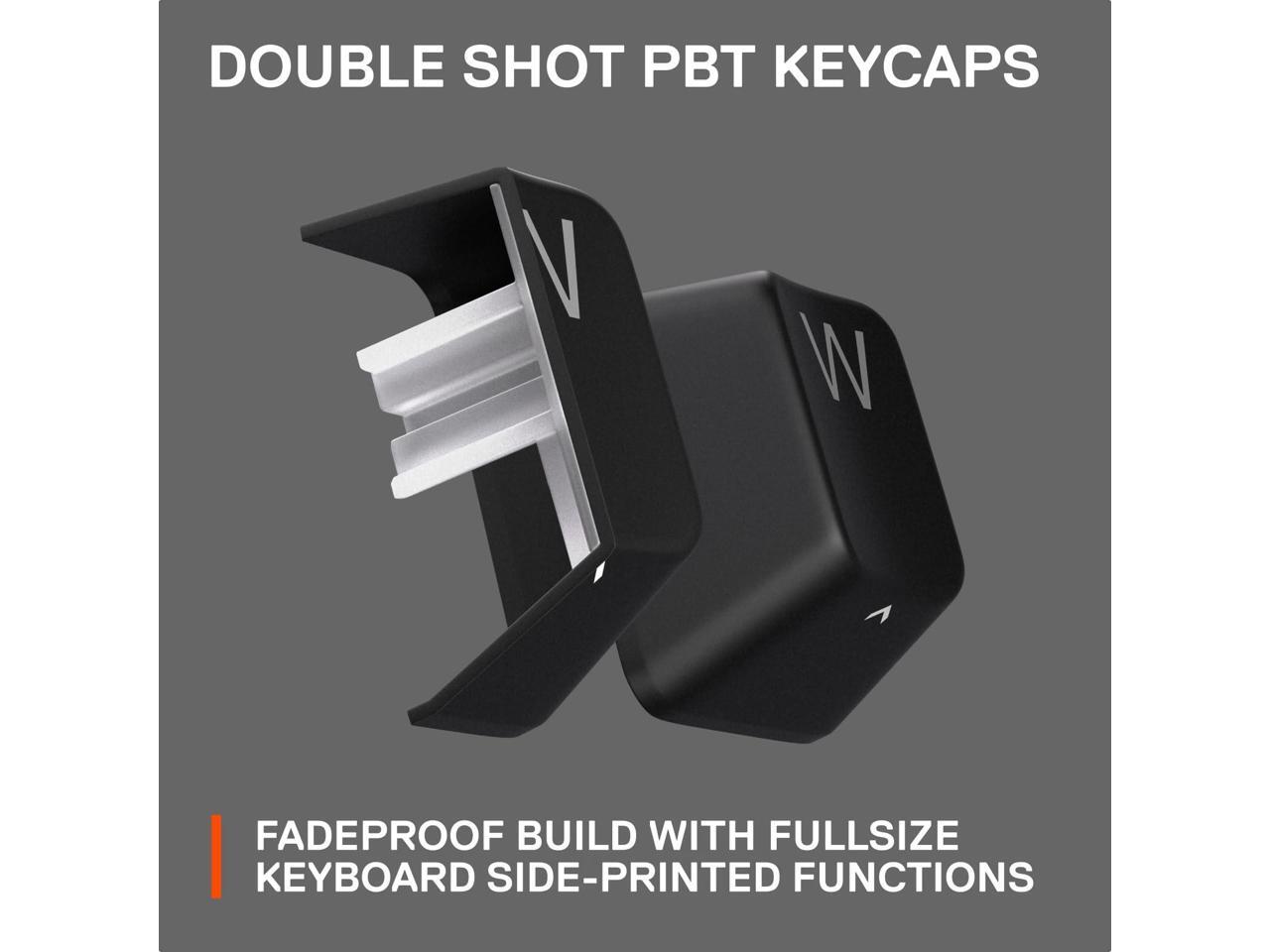 - Durable PBT Keycaps - Long-lasting and fadeproof double shot PBT keycaps provide a high-quality texture for enhanced keystroke feel as well as improved typing accuracy