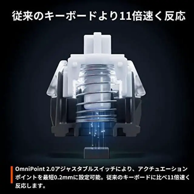 • [World's fastest keyboard] Omnipoint 2.0 adjustable switch allows you to set the actuation point as short as 0.2mm. Responds 11 times faster than traditional keyboards.