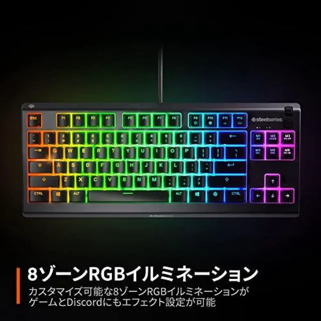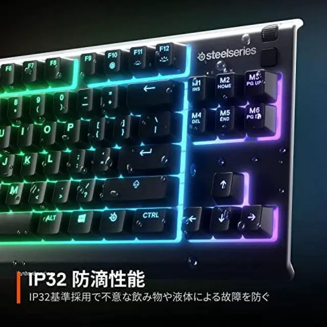 SteelSeries Gaming Keyboard, Tenkeyless, Wired, Apex 3 TKL, Japanese Layout, Quiet Switches, IP32 Splashproof, Supports 24 Keys Simultaneous Press, Black