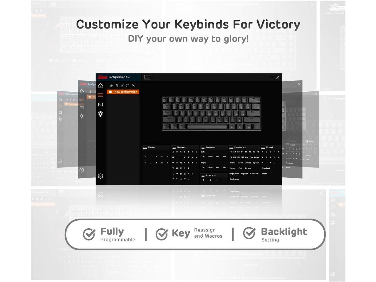 - 60% Mechanical Gaming Keyboard: The Compact mechanical keyboard with 61 Keys brings you a neat desktop. Tips you might want to know is that 60% BT gaming keyboard without numpad is most FPS gamers choice, more spaces left for mouse movements.