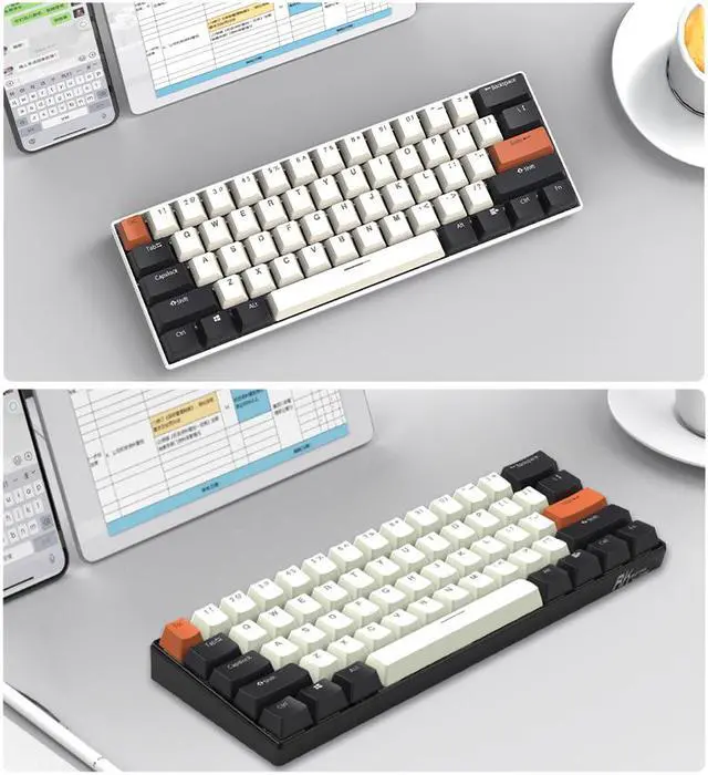 3.Concise and portable: Designed with ultra-thin, light weight, small size and concise outlook, RK61 keyboard is handy, comfortable and portable to carry to everywhere for familiar typing in any room.