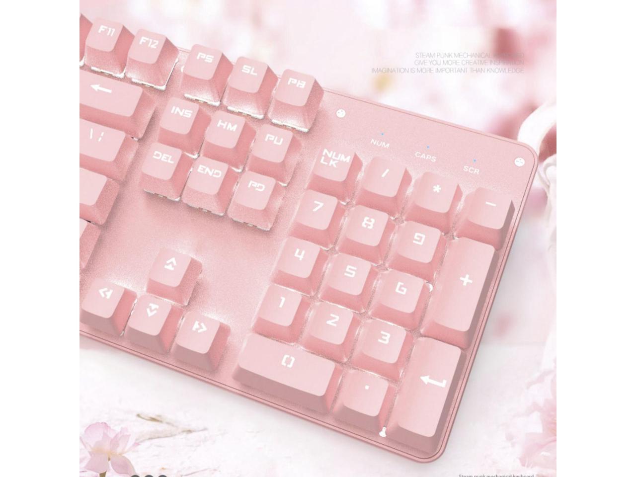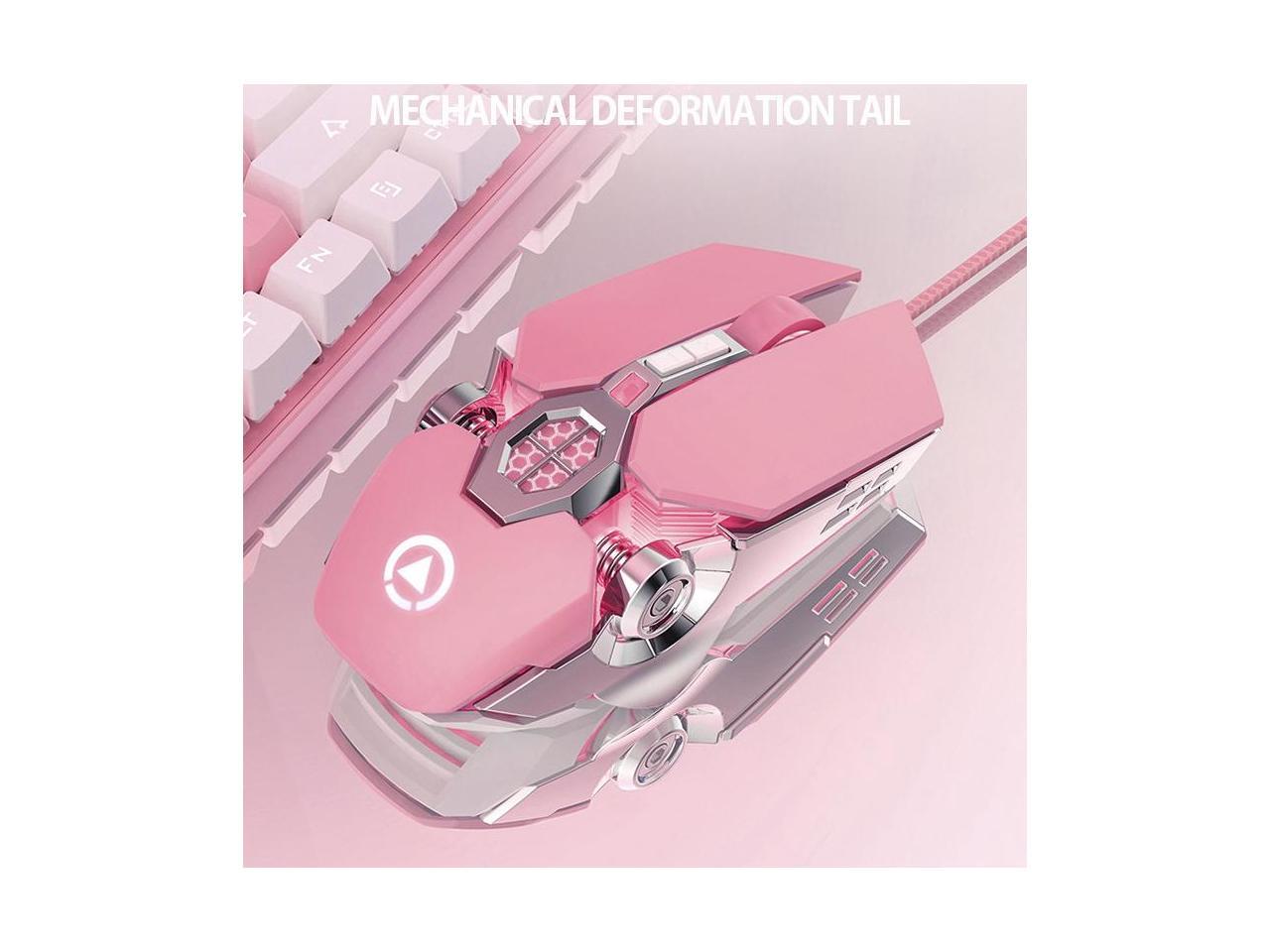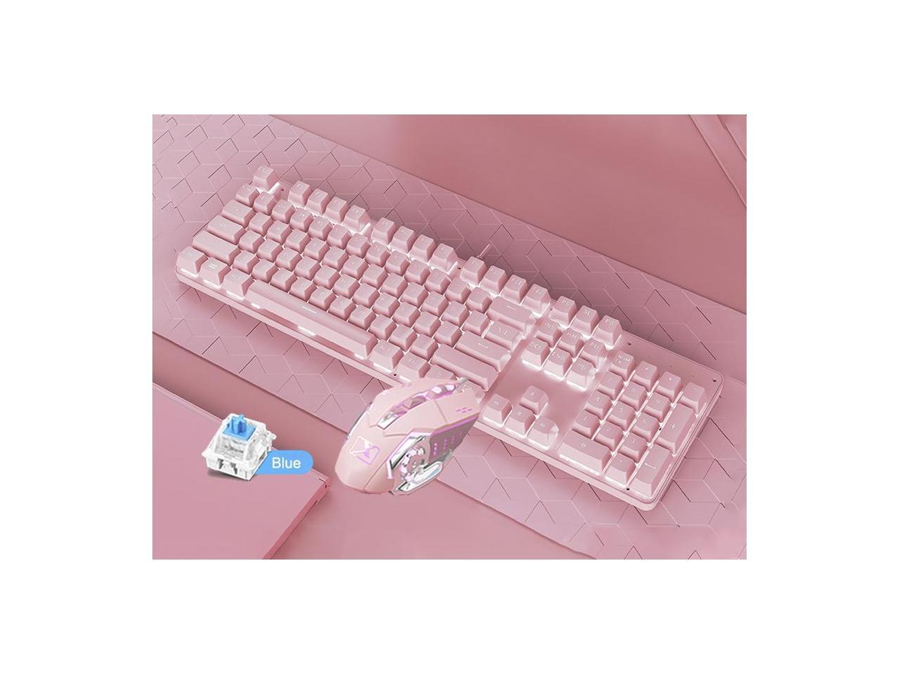 CORN MK Ergonomic Design, N-key Rollover Cool Exterior USB Wired Blue Switch PBT Keycaps Mechanical Gaming Keyboard With Backlit And 2400DPI,4 Breathing Light Mouse Combo - Pink