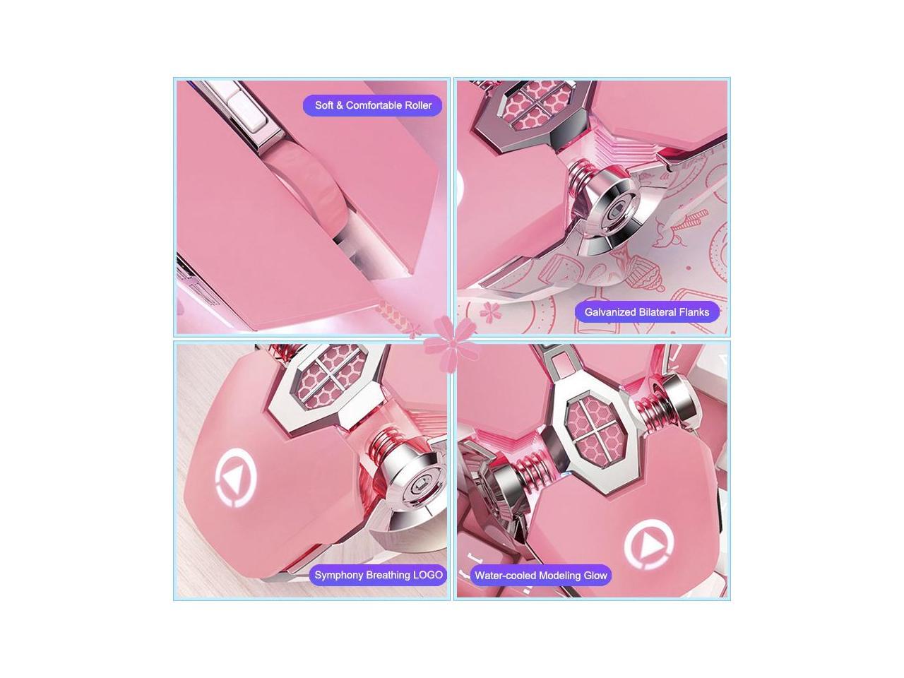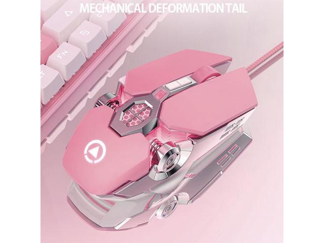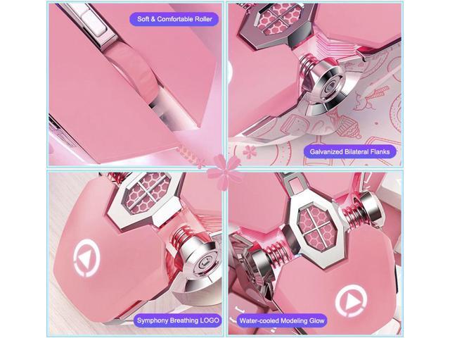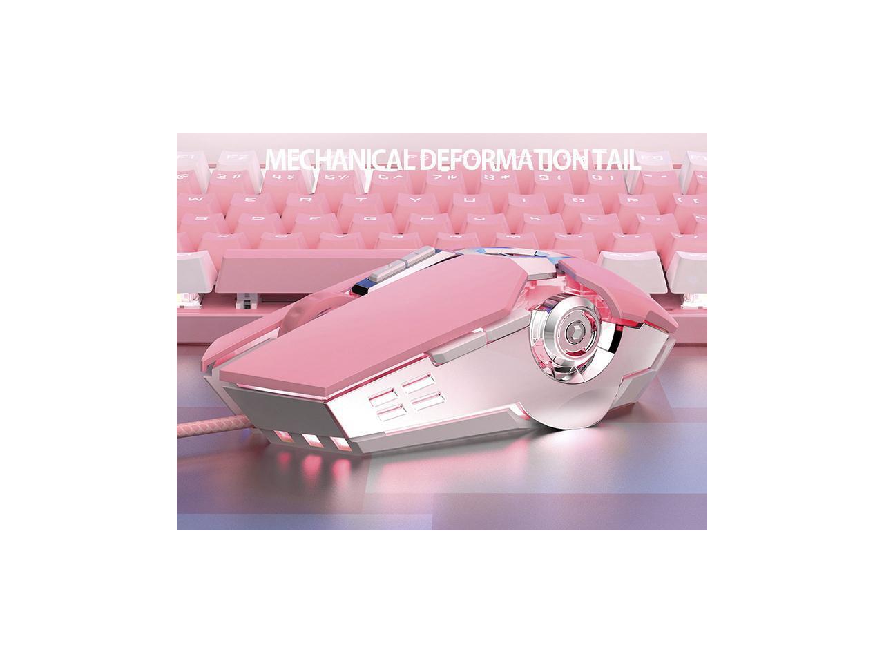 CORN MK Ergonomic Design, N-key Rollover Cool Exterior USB Wired Blue Switch PBT Keycaps Mechanical Gaming Keyboard With Backlit And 2400DPI,4 Breathing Light Mouse Combo - Pink