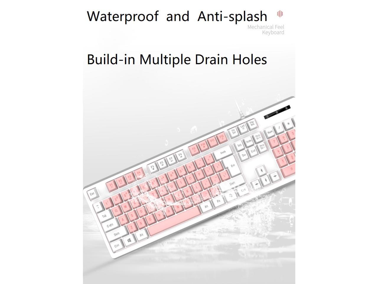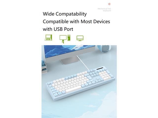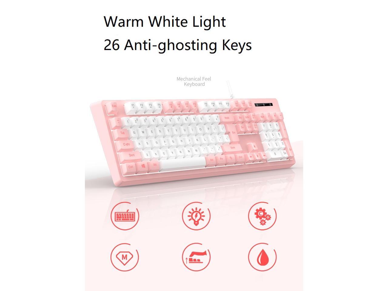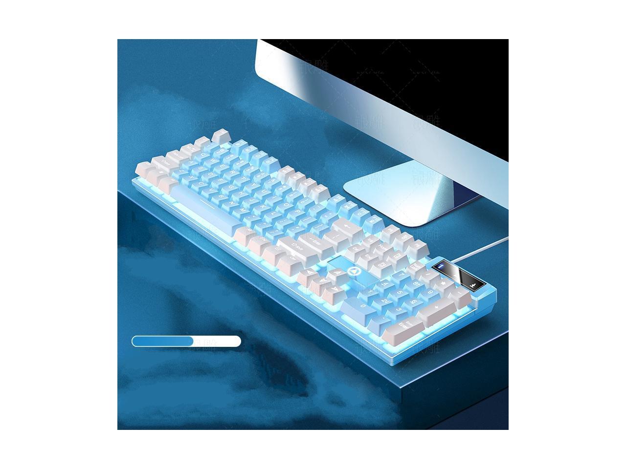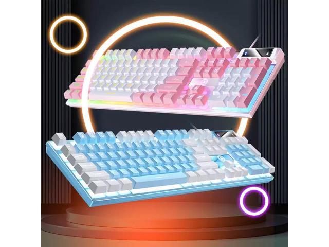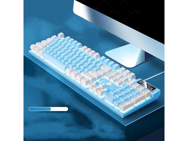 Mechanical Feeling Gaming Keyboard Full Size 104-Keys for PC and Laptop, 26 Anti-ghosting Keys,Blue keyboard Wired White Backlit