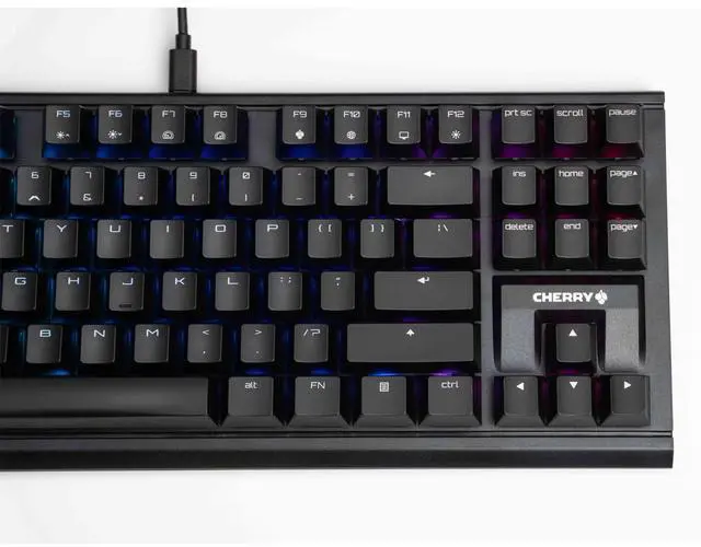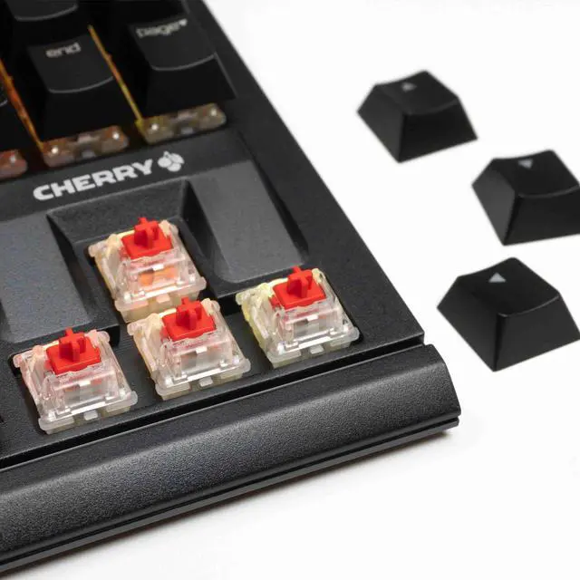 Keycap Design: CHERRY keycap height, ergonomic design, ABS dual-shot keycaps