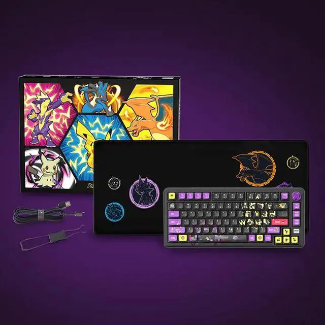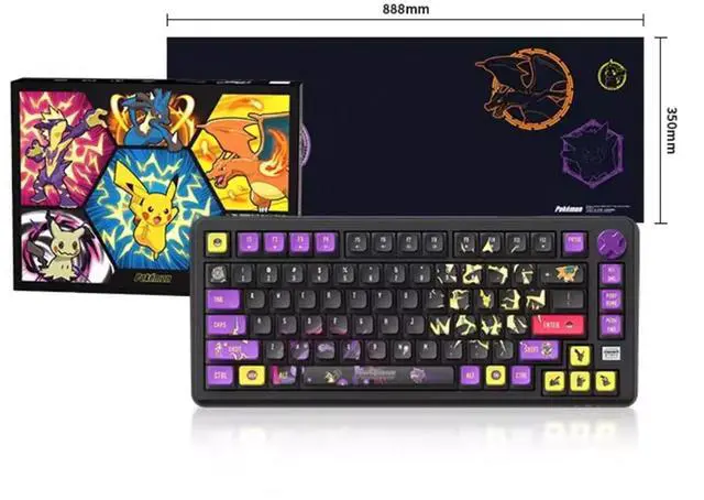 IP Co-branded Design: Pokémon Trainer-themed customization, paired with PBT+PC pudding keycaps and vibrant RGB backlighting, plus a matching themed desk mat to immerse you in the world of Pokémon.