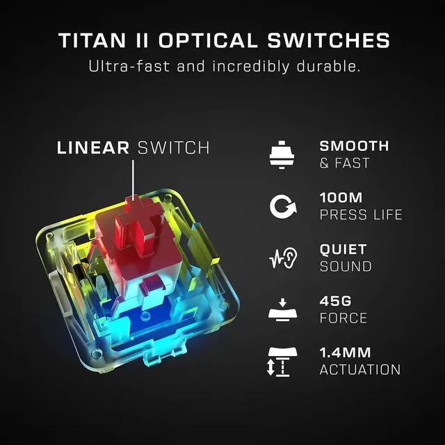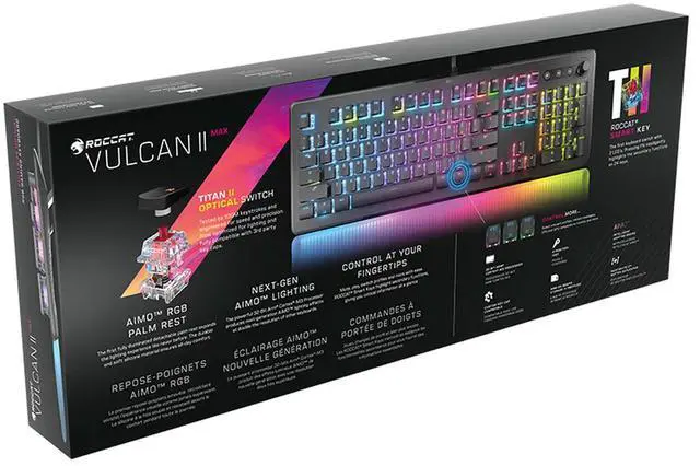 ROCCAT Vulcan II Max Optical-Mechanical PC Gaming Keyboard, 104 Keys, Customizable RGB Illuminated Keys and Palm Rest, Titan II Smooth Linear Switches, Aluminum Plate, 100 M Keystroke Durability-Black