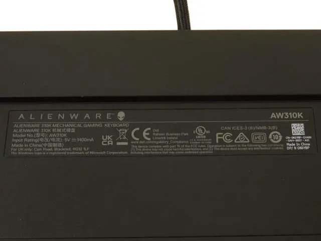 Alienware Mechanical gaming Keyboard 310K, compact floating key architecture with Cherry MX Red switches, customizable per-key backlighting, fully programmable keys with N-key rollover