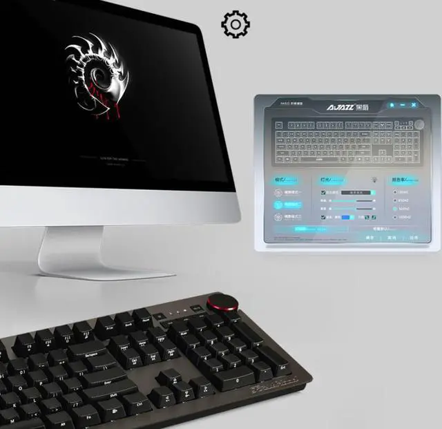 Highlights SPECIAL SIDE CARVING TECHNOLOGY. Side carving keycaps and the inversion install switches, unique light effects and never worry about keeping out the characters; light from the side, protect your eyes. Ajazz Blue SWITCHES. Special Modified Blue Switches offer the same experience as Cherry MX blue and life span reaches up to 50 million. FASTEST RESPONSE SPEED AND BEST STABILITY. ARM 32-bit processor, the fastest response speed; classic 104 keys layout, the aluminum construction, 1.8 m anti-interference braided wire ensures stable data transmitting and greater durability. SPECIAL MULTIMEDIA KEYS.
