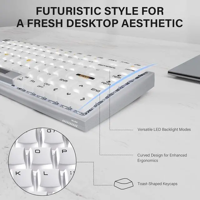 Square-Shaped Keycaps: This unique design not only enhances the overall aesthetics of the keyboard but also provides a comfortable typing experience. The rounded top allows for easy finger placement, reducing strain during long typing sessions