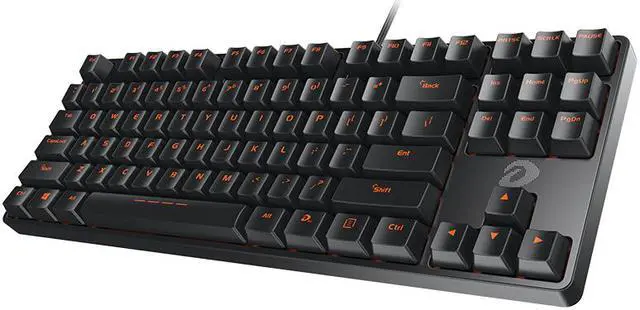 Brief but Rather Complicated The DK100 adopts a simple 87-key and 104-key standard layout. Whether you are at home or office, it can meet your needs. The compact body makes your desktop more clean and tidy. Full Mechanical Key Quick response DK100 adopts Dareu's autonomous mechanical switch, with a key life of up to 50 million times, 2mm keystroke travel, 50g keystroke force, your keyboard is durable, 1000 times / sec return, real-time fast response. Double Color Injection keycaps With Good Feeling The DK100 Basic Edition uses a double color injection molded opaque keycap that displays orange character of Dareu, no light, but better than light.