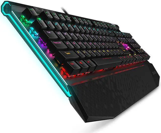 Different Flanking RGB Design The EK812 mechanical keyboard adds a RGB strip design to the left and right sides in order to achieve a different visual impression. Ice blue light with multiple sets of light modes, the entire spectrum can give you a different feeling. Fascinating Backlight System The EK812 mechanical keyboard's main keypad uses six layers of mixed light (green/blue/purple/pink/yellow/red). Multiple sets of lighting modes can give you an unusual visual experience in a dark environment. Large One-piece Hand Rest The upgraded version of EK812 is added a large (about 60mm) hand rest. The ABS material is matched with a different surface eclipse.