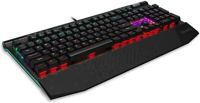 Different Flanking RGB Design The EK812 mechanical keyboard adds a RGB strip design to the left and right sides in order to achieve a different visual impression. Ice blue light with multiple sets of light modes, the entire spectrum can give you a different feeling. Fascinating Backlight System The EK812 mechanical keyboard's main keypad uses six layers of mixed light (green/blue/purple/pink/yellow/red). Multiple sets of lighting modes can give you an unusual visual experience in a dark environment. Large One-piece Hand Rest The upgraded version of EK812 is added a large (about 60mm) hand rest. The ABS material is matched with a different surface eclipse.