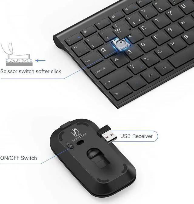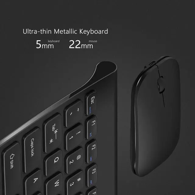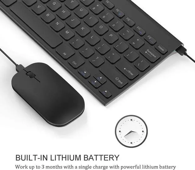 Both keyboard and mouse are powered by280 mAh lithium battery, you can use up to 3 months with a single charge (based on 2 hours use per day) If there is no operation more than 10 minutes, the wireless keyboard and mouse will turn to sleep mode and you can press any keys to active, which saves power and ensures a longer battery life Rechargeable & Long Battery life Auto Sleep to Save Power