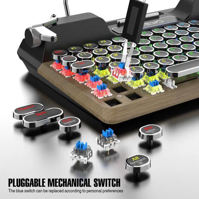Built-in hot swap blue switch: The classic typewriter style is integrate with premium hot swappable blue switch keyboard technology. Accelerate the speed of typing and enjoy the "Click"feeling by the old royal typewriter