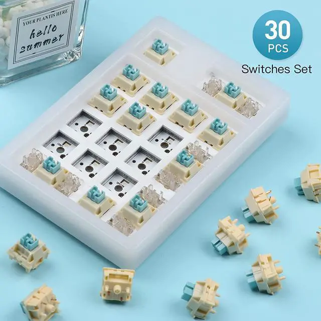 EPOMAKER Budgerigar 30 Pieces 47gf Tactile Mechanical Keyboard Switches Set, 55gf Initial Force Factory Lubed Switch with POM Stem, Dual Spring, Nylon Housing for Gaming DIY Keyboard