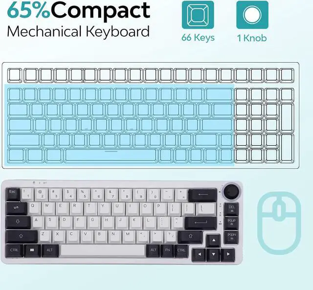 EPOMAKER Theory TH68 65% mechanical keyboard features multi-modes connection to provide free switch between different devices. Bluetooth 5.0 and 2.4GHz offer fast and stable transmission without latency while included Type-C cable provides solid connection as a backup when the battery is out.