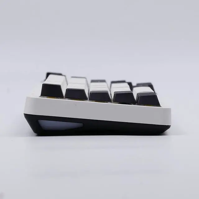 The TH68 with a set of black-white-themed keycaps, made of PBT material via double shot technique.