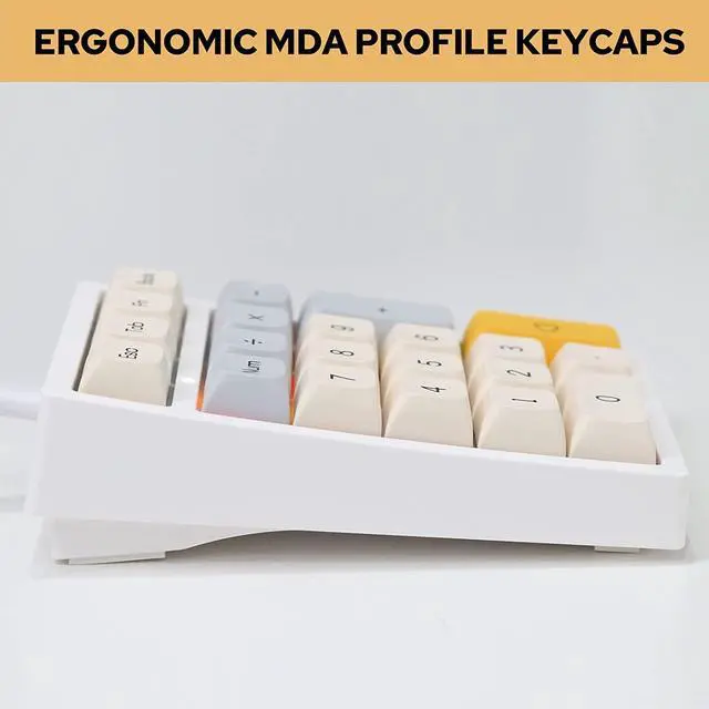 MDA Profile PBT Keycaps-Theory ThemeContinuing the Theory colorway, TH21 numpad come with the same PBT keycaps in MDA profile. High quality PBT keycaps are often considered the top choice for keycap materials, even over ABS keycaps, as PBT is much more durable, oil-resistant (wont get shiny over time like ABS), and stays true to color longer