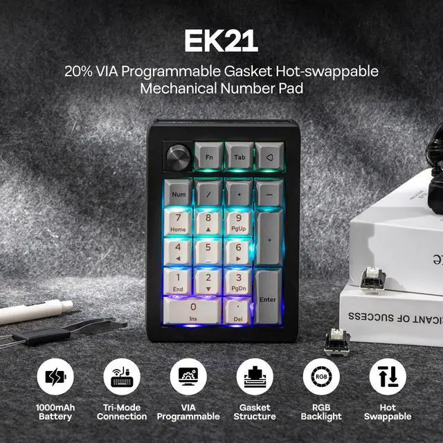 EPOMAKER EK21 Wireless Hot-Swap VIA Number Pad with Aluminum Alloy Knob