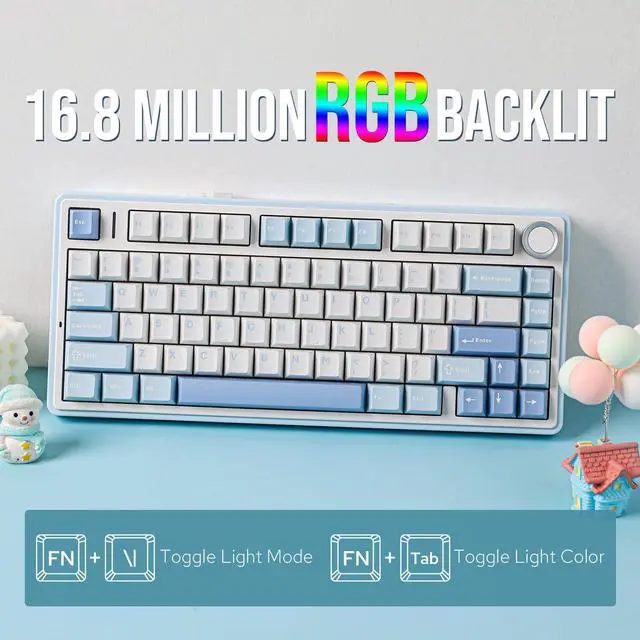Engage in the dynamic glow of the F75's RGB backlight, presenting a rich spectrum of 16.8 million colors for a personalized typing environment. Tailor lighting patterns to suit your preferences, creating a desktop atmosphere that adapts to your mood.