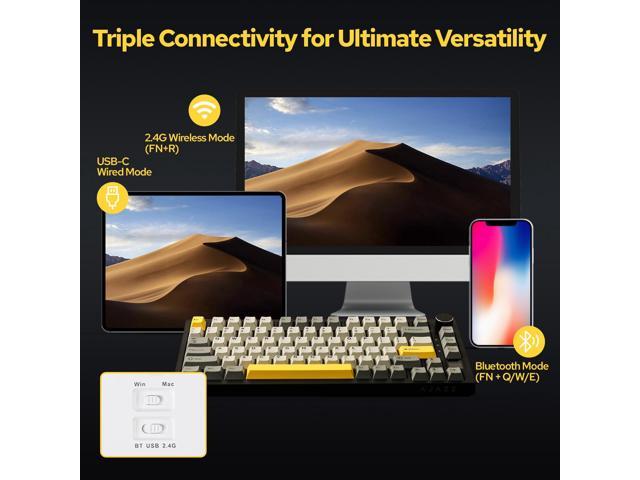 [Wireless & Wired Connectivity]The Ajazz AK820 Pro supports connection via Bluetooth or 2.4GHz for wireless connectivity, or with the included Type-C USB cable. With Bluetooth 5.1, the keyboard responses faster and save more power than the former Bluetooth versions. The keyboard is also easily switched among the three modes for efficient multitasking and speedy performance. Included 4000mAh battery ensures a long and steady use, without worries of short out.