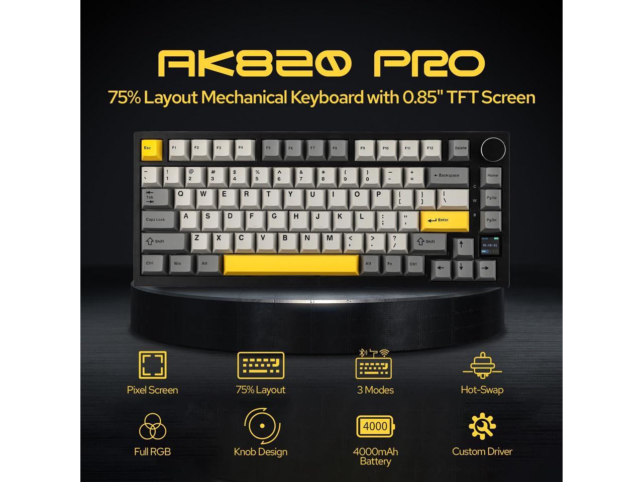 [A Popular 75% Compact Design]Designed for both enthusiasts and professionals alike, the Ajazz AK820 Pro offers a combination of innovation and craftsmanship that's hard to beat. This 75% compact mechanical keyboard maximize your desk space and enjoy a sleek look with this 75% layout. It's also perfectly portable, allowing for seamless typing experiences, delivering a superior typing experience without compromising on features or functionality, wherever you are.