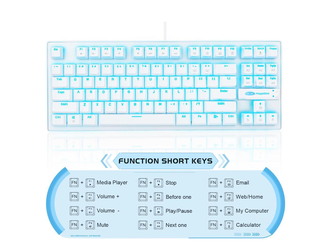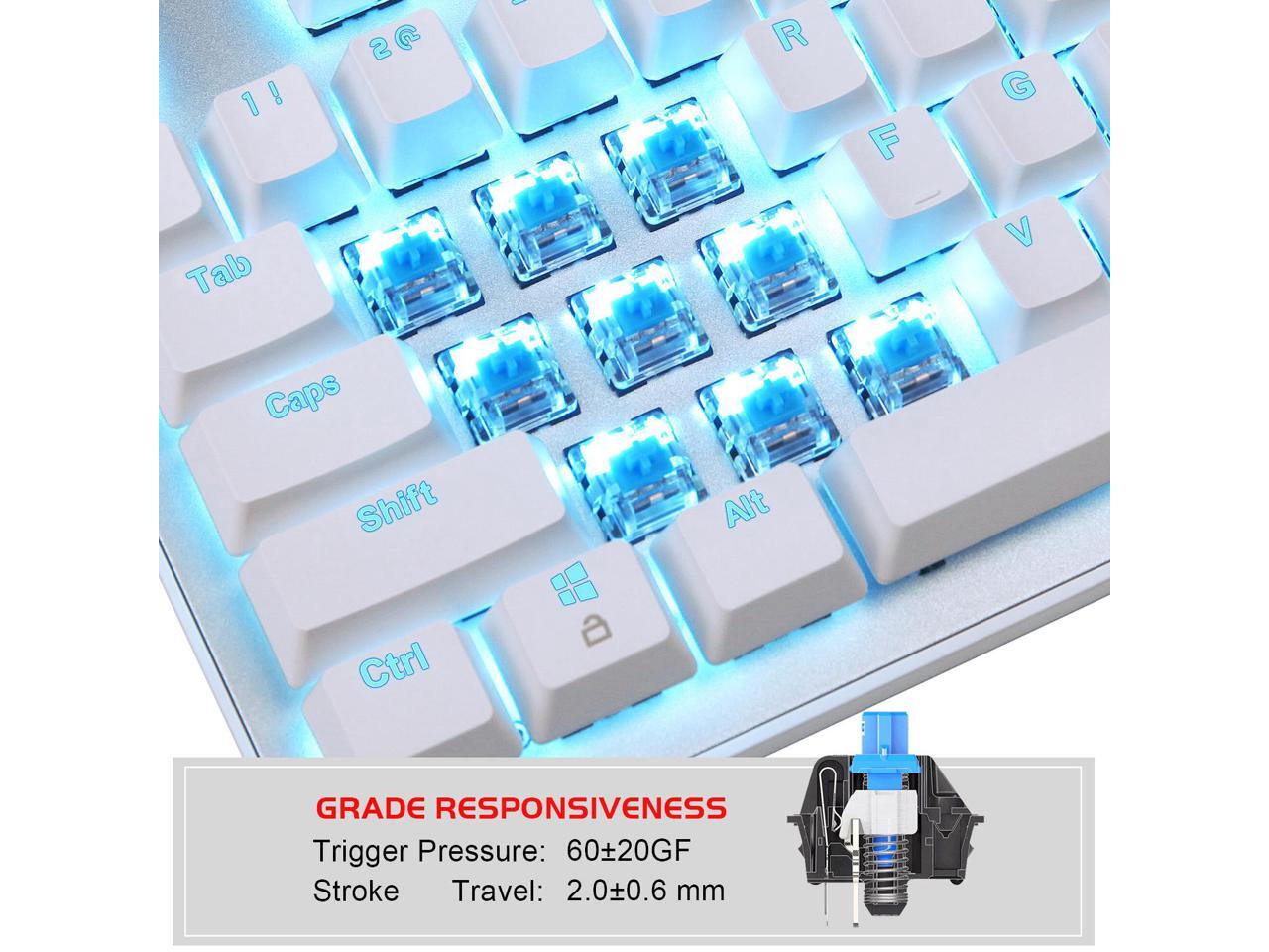 MK1 PC Mechanical Gaming Keyboards - USB Mechanical Computer Keyboard Wired Blue Switches for MAC/PC Gamers white