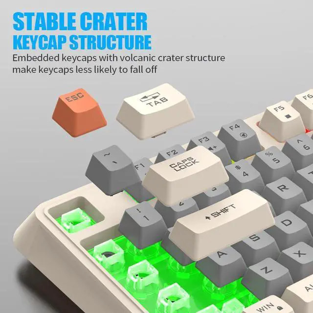 Ergonomics arc keycap, smooth lines, give you a comfortable feeling and anti-fatigue when you gaming or typing.