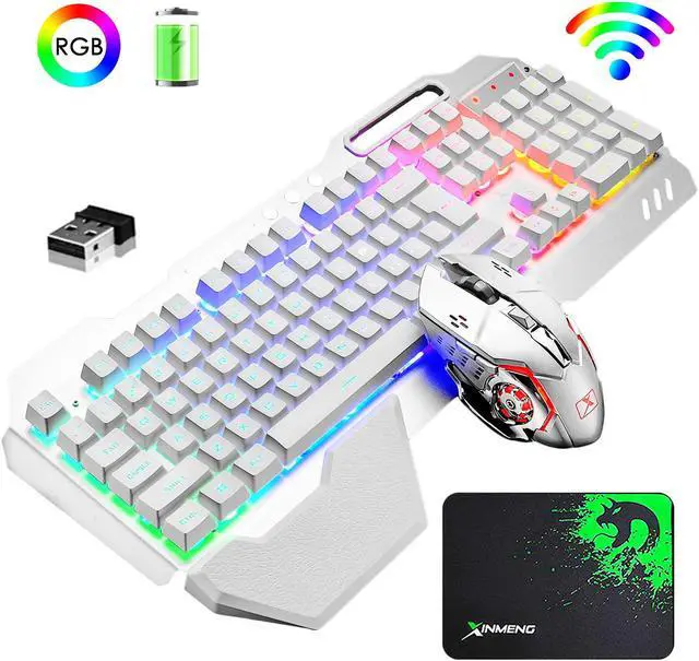 Wireless Gaming Keyboard and Mouse with Rainbow Backlit Rechargeable Metal Panel Mechanical Feel Keyboard and Gaming Mouse for Gamer Laptop PC,Black Silver