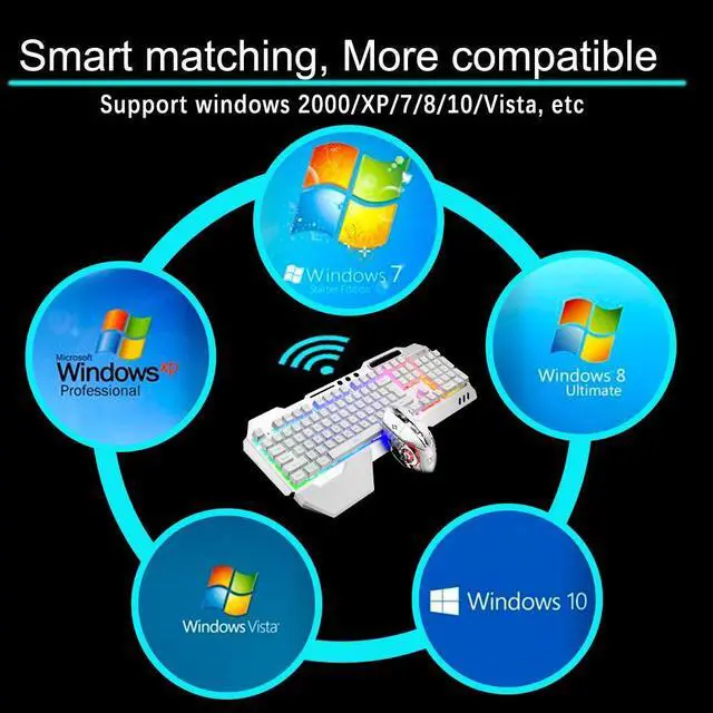 This mechanical gaming keyboard&mouse set featured with easy plug and play, they shared a USB receiver which place in the bottom slot of the mouse, with the advanced 2.4G wireless technology, they can easily connected with the computer, laptop, etc, by inserting the USB receiver into the USB port of the PC device you want to connect, no need to install any software, very convenient, note: when connected, pls make sure the keyboard and mouse is turned on.
